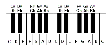 of D But notice that there is no E#, Fb, B# nor Cb because we have to leave a gap in the pattern of black notes at these points or the poor keyboard player would be right back where we started. The chromatic scale is best learned in both directions: Ascending using